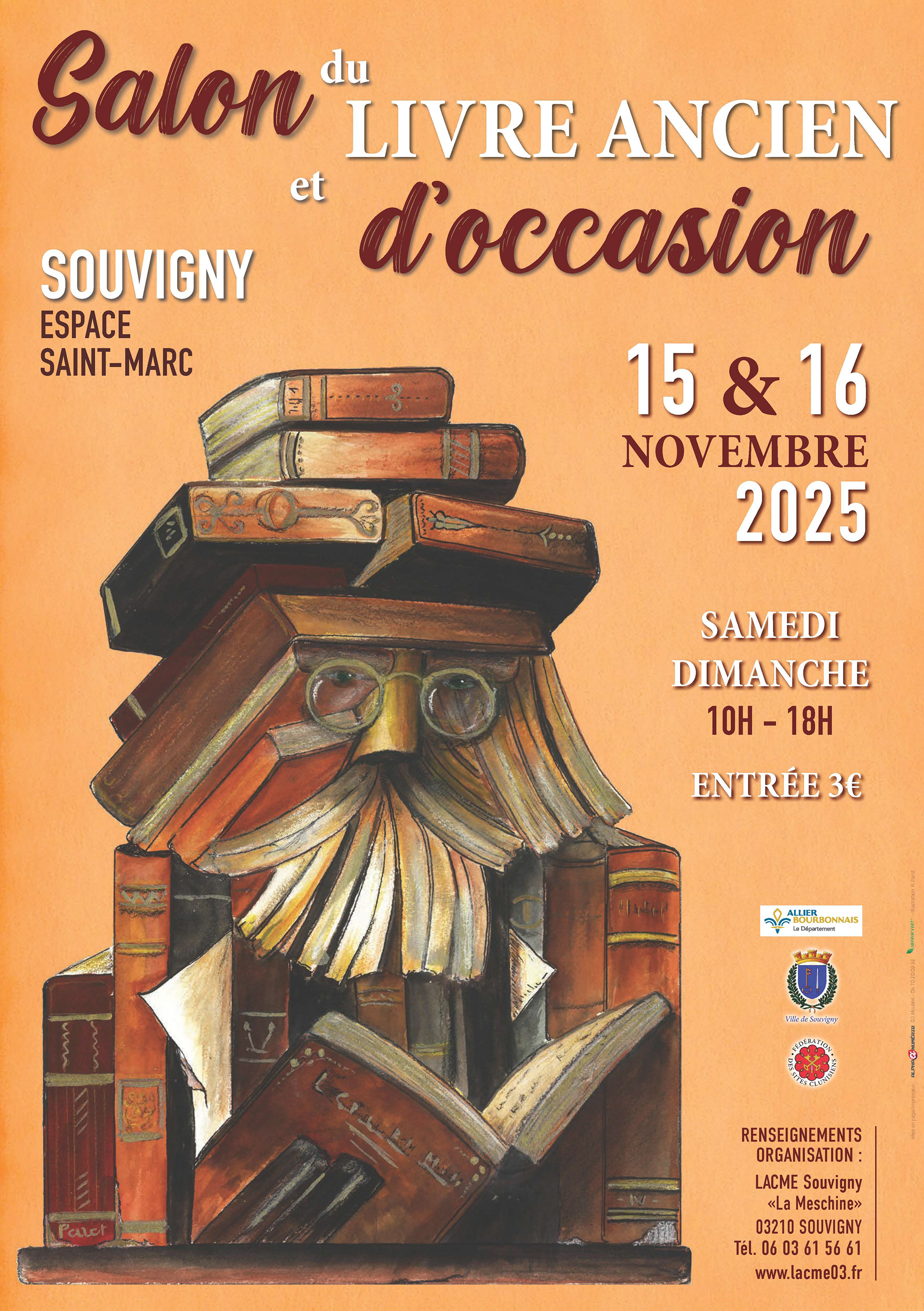 Salon du livre ancien et d’occasion de Souvigny. 15 et 16 novembre 2025 de 10h à 18h. Espace Saint-Marc, place Aristide Briand, 03210 Souvigny.